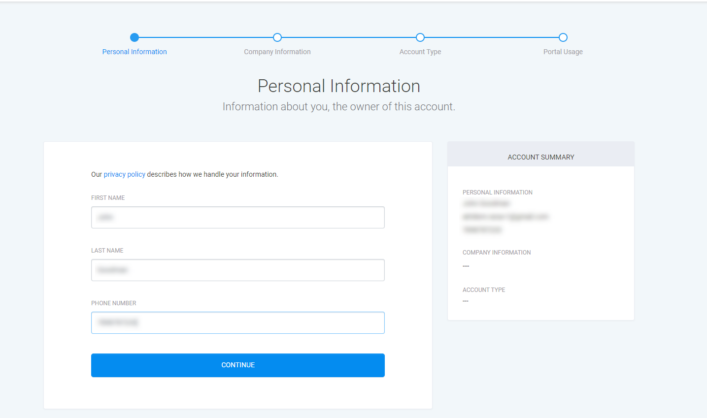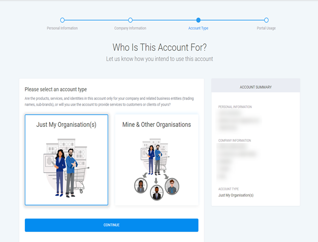 Account Type - You are asked to confirm who this account is for.