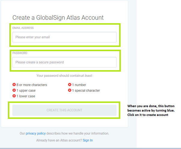 Now that you have successfully created your GlobalSign Atlas account, the next step will be to create an identity.