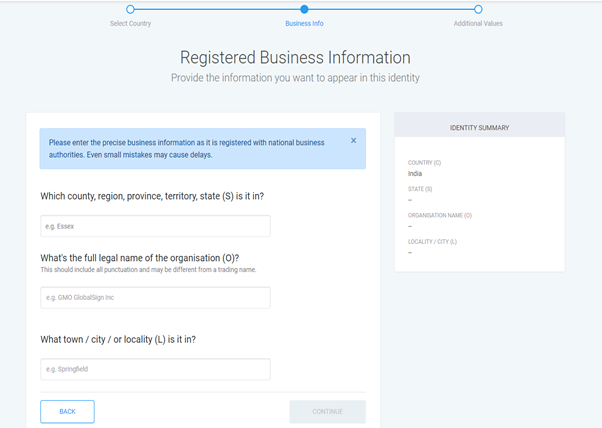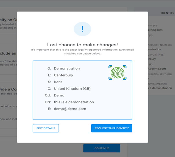 Please note that you cannot make any changes in the Identity details after this step.