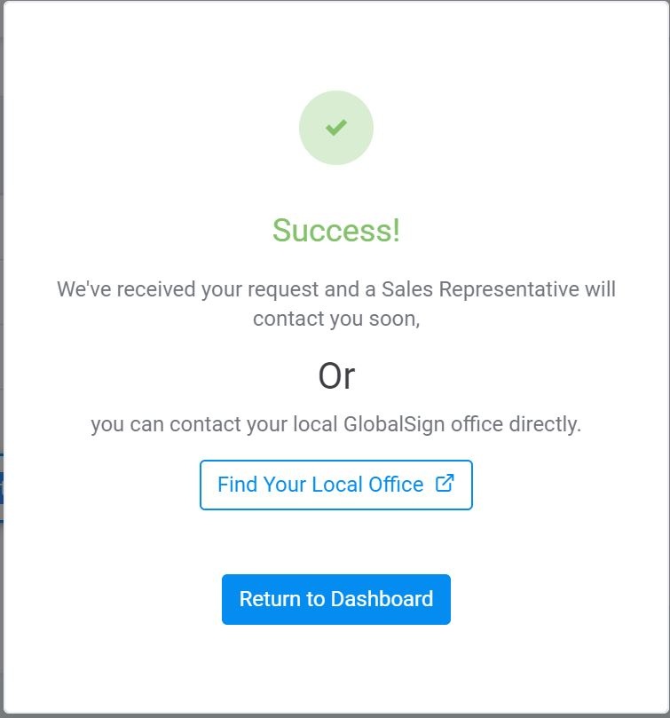 A message will pop up to inform you that a Sales Representative will contact you soon.