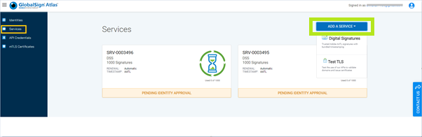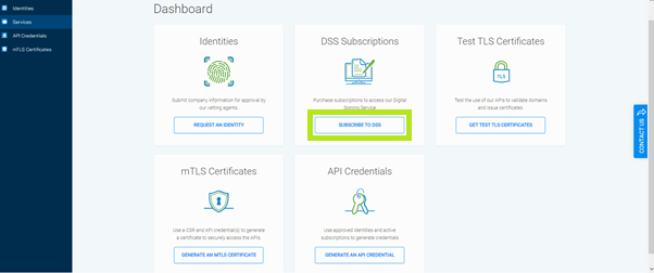 Alternatively, you can click on Services from the menu on your left-hand side and click on the SUBSCRIBE TO A SERVICE button on the following page.