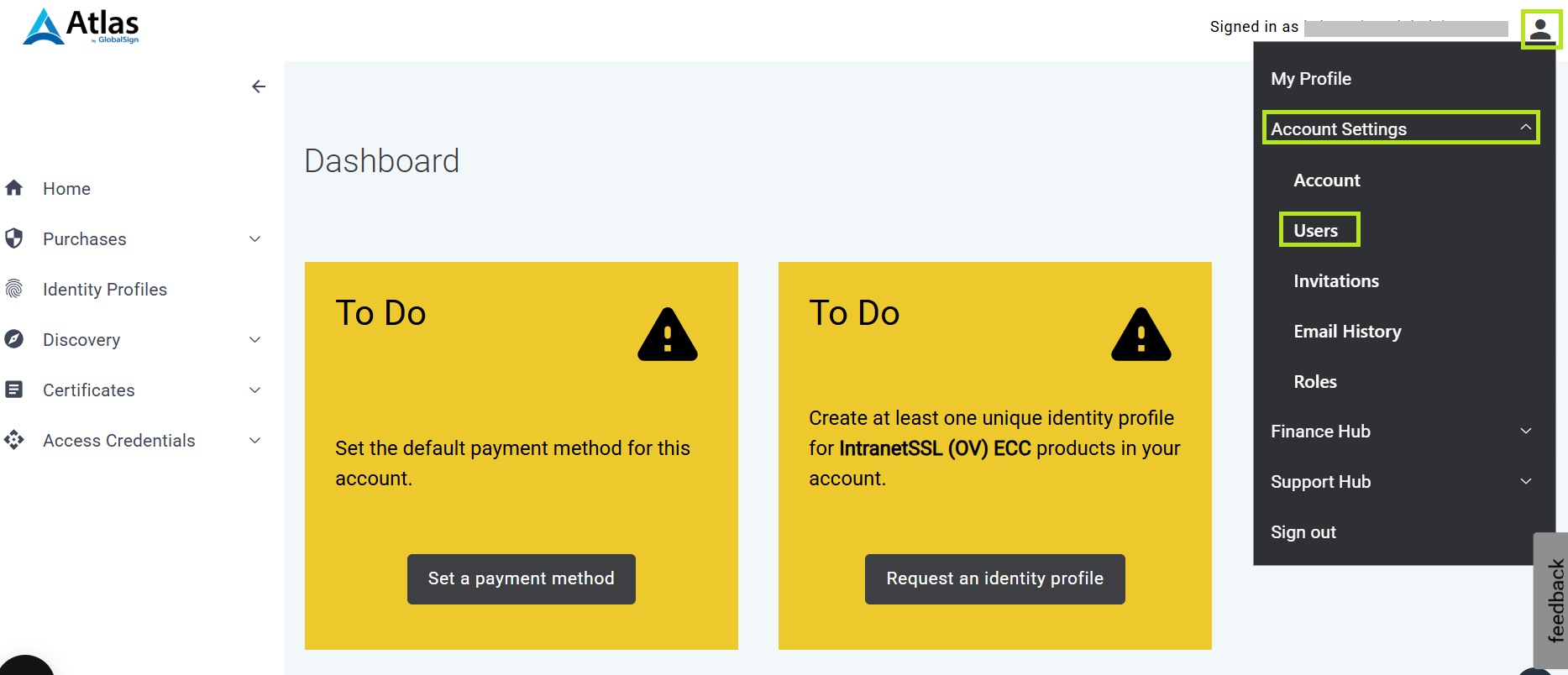 In Atlas, the actions a user can perform are determined by their assigned role(s). The administrator has permissions to everything and is the only role that can assign roles to other users. An Atlas user may have one or more roles assigned; when multiple roles are assigned to a user, they get the combined functionality of each assigned role. This flexibility enables a least privileged access model, scoping user access to perform tasks aligned to their responsibilities. Example: Existing User Role is Manage Certificates. This user requires access to request and submit new profiles (Identities). The Admin should update the user to include Manage Identities in their role to have access to managing Identities.