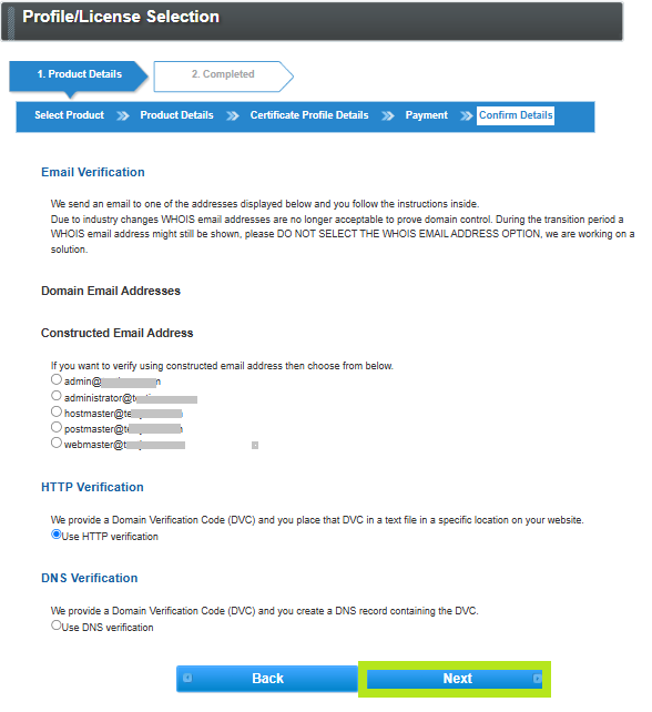In the Certificate Profile Details, select a profile to apply and enter your details. Then, click Next.