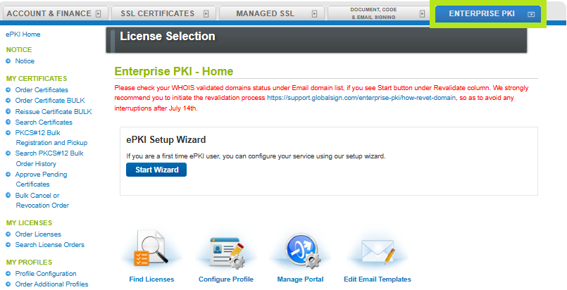 Once done creating your GCC account, log in to your account and go to Enterprise PKI tab.