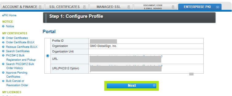 IMPORTANT: If you are a new customer, you can contact a Sales Representative to set up an Enterprise PKI account or you may refer to this page to create a new profile. |