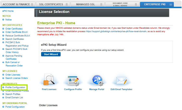 OVERVIEW: This page walks you through the process enabling profile for BR compliant S/MIME in EPKI. At the completion of this procedure, you will be able to configure your profile to BR compliant S/MIME in EPKI. |