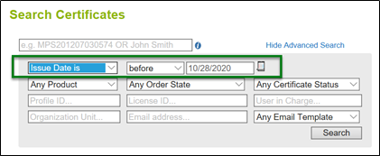 Es importante tener en cuenta esto, ya que los certificados que expiran aproximadamente 90 días después de la fecha límite de revocación pueden seguir el proceso de renovación en lugar de volver a emitirse (si está utilizando el método manual o automático).
