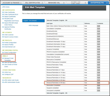 - Para la configuración de renovación manual y automática, asegúrese de tener habilitados los correos electrónicos de renovación de 90 días (como se muestra en la imagen a continuación):