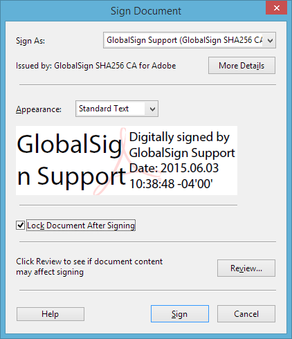 Cet article vous explique comment signer un PDF dans Adobe Acrobat XI. Les instructions sont spécifiques à la signature d'un certificat Adobe AATL. Les certificats de signature de PDF de GlobalSign attestent de l'identité du signataire et protègent vos documents PDF contre toute modification.