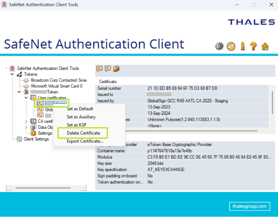 VISÃO GERAL: Este artigo o orienta no processo de remoção de certificados expirados ou não utilizados no SafeNet eToken. Ao concluir esse procedimento, você poderá limpar seu eToken com certificados expirados ou não utilizados para poder adicionar certificados recém-emitidos. Se você precisar inicializar o eToken, consulte este guia. |