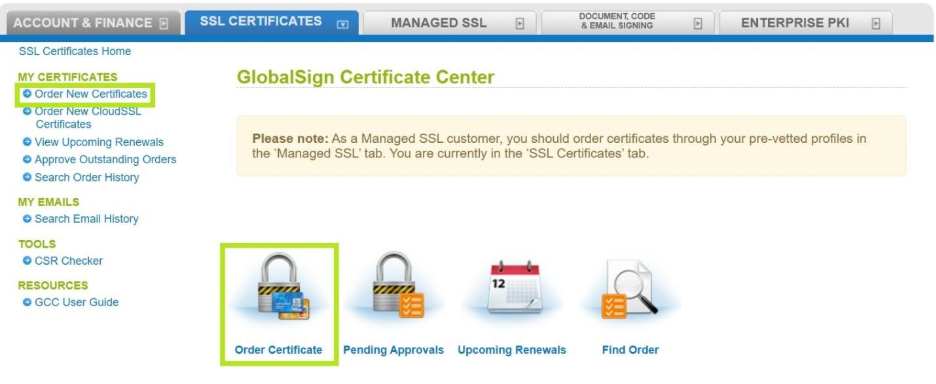 IMPORTANTE: Se você for cliente da GlobalSign pela primeira vez, poderá fazer seu pedido de SSL pelo nosso site. Durante o processo de pedido, solicitaremos que você crie sua conta no GlobalSign Certificate Center (GCC) para gerenciar seus certificados e processar seus pedidos futuros. Se você já for um cliente e tiver criado uma conta GCC anteriormente, siga as orientações abaixo. |