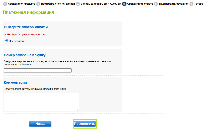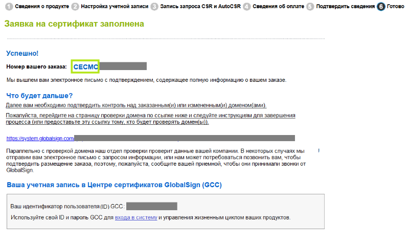ДАЛЬНЕЙШИЕ ДЕЙСТВИЯ: После завершения проверки и обработки платежа ваш сертификат будет готов к загрузке и установке. Инструкции по установке сертификата см. в этом руководстве. Если у вас есть вопросы или необходимо уточнение, обратитесь в службу поддержки за помощью. |