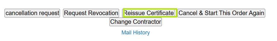 NOTE: Each time you reissue your Certificate, a new order number is created. Repeating steps 1 & 2 will bring up an updated list of orders including your reissued Certificate. It should be the most recent one on the list. If you need to perform additional reissues of the same Certificate, it must always be done from the latest iteration of your Certificate. When you reissue your SSL Certificate it will not affect the original Certificate which will remain fully functional unless revoked.